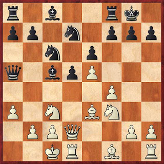 14.Lxh7+! Kxh7 15.Dd3+ Kg8 16.Sg5 f5